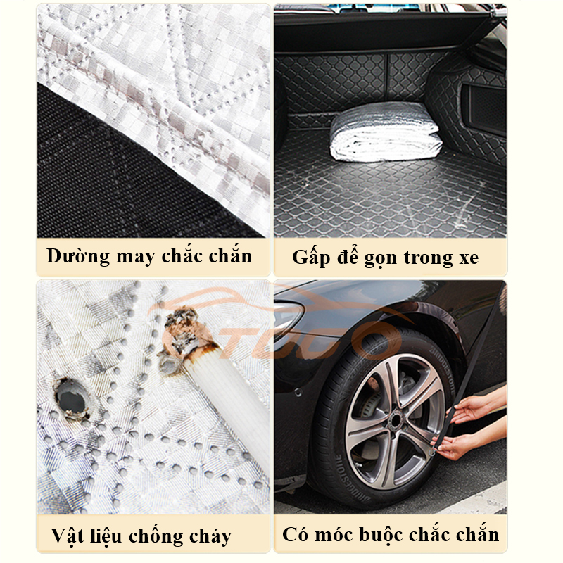 - Với thiết kế tạo hình ổn định, ôm khít theo thân xe, đồng thời có thêm dây để cố định với 4 tay nắm cửa xe, có tác dụng chống gió giật.
