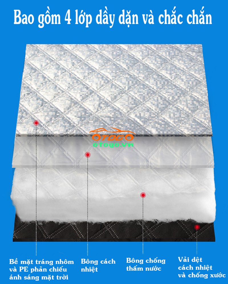 - Thiết kế 4 lớp, tác dụng cách nhiệt, chống nóng siêu cấp