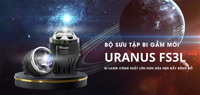 Bi gầm Vislight Uranus FS3L được lấy cảm hứng từ các hành tinh trong hệ mặt trời. Uranus chính là sao Thiên Vương, đuôi FS3L thể hiện đây là dòng bi laser có kích thước 3 inch. Chất liệu được làm bằng nhôm nguyên khối giúp bi mát và tản nhiệt dễ dàng hơn.