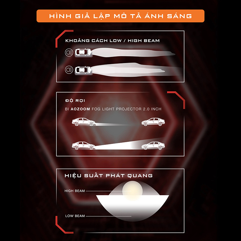 Ngoài ra, đèn gầm này còn có khả năng chiếu sáng với tầm thấp, ngăn chặn chói lọi cho các phương tiện di chuyển ngược chiều, tăng cường sự thoải mái cho người lái xe và đảm bảo an toàn giao thông. Điều này đặc biệt quan trọng khi di chuyển qua khu vực có khúc cua và đường hầm, nơi đòi hỏi sự tập trung cao từ phía người lái xe. Ánh sáng đèn gầm không chỉ đáp ứng các tiêu chuẩn an toàn mà còn tạo ra một trải nghiệm lái xe văn minh và lịch sự trên đường.