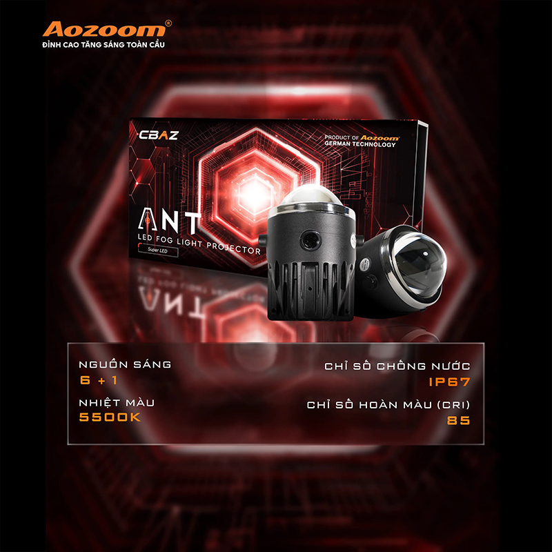 Cụ thể: LED ANT FOG LIGHT NEW ARRIVAL sử dụng công nghệ Super LED 6+1 tiên tiến với nhân LED gấp 4 lần thông thường, cho hiệu suất phát quang cao hơn 30% so với các dòng chip LED thường. Tiêu thụ công suất chỉ 47W (Cos) – 52W (Pha), LED ANT FOG LIGHT mang tới luồng sáng vô cùng ấn tượng, thăng cấp mạnh mẽ không hề kém cạnh các dòng bi khác.