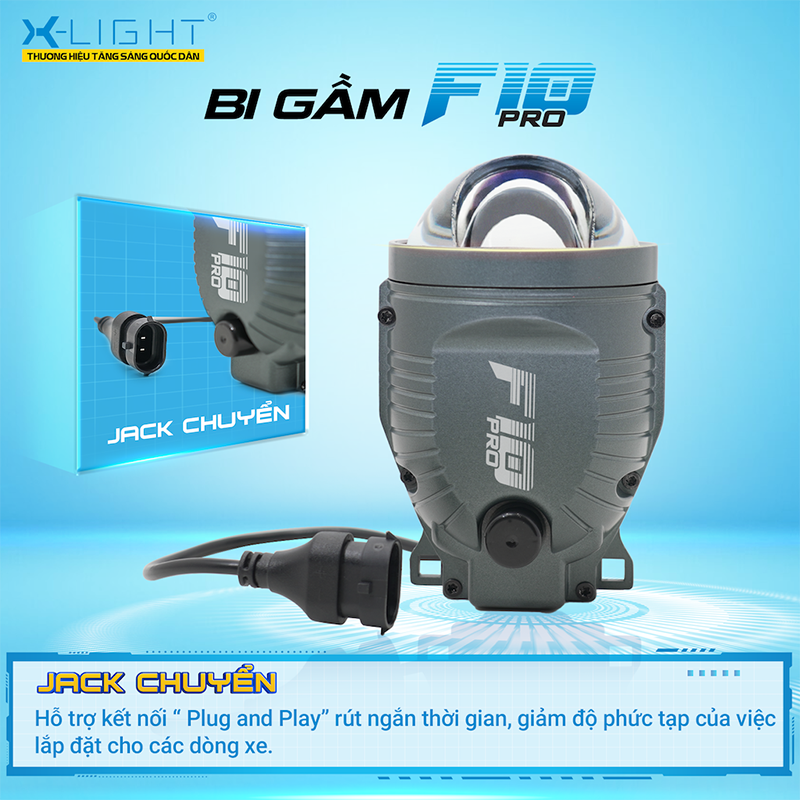 Bi gầm F10 Pro được bổ sung jack chuyển chuyên dụng, hỗ trợ kết nối “Plus and Play”, giúp đẩy nhanh tốc độ lắp đặt trên xe và giảm độ phức tạp khi lắp cho các dòng xe khác nhau.