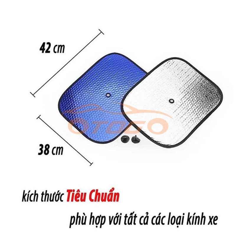 Tấm che nắng của bên ô tô cho hành khách ngồi 2 bên với kích thước 38x42cm được làm bằng chất liệu phản quang cách nhiệt đặc biệt chắn nắng và nóng tuyệt đối cho người ngồi trong xe, không bị phai màu khi sử dụng với thời gian lâu. Với chất liệu và thiết kế bắt mắt, giá thành rẻ nhất định Bộ tấm che nắng cửa bên ô tô sẽ là sự lựa chọn lý tưởng nhất cho ô tô của bạn, góp phần làm cho ngôi nhà di động của bạn trở nên sang trọng và tiện nghi hơn.