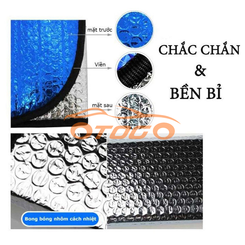 Tấm chắn nắng có 2 mặt: mặt trong màu xanh, mặt ngoài màu bạc quay ra . Phía ngoài giúp phản xạ ánh sáng tối đa ra khỏi xe của bạn.