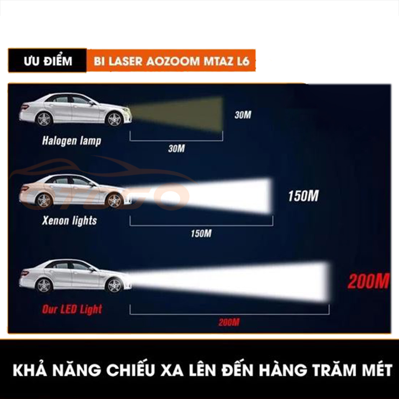 Trước kia công nghệ đèn laser nguyên bản theo xe chưa thể đảm nhiệm vai trò chiếu gần và chiếu xa mà phải đi kèm đèn led hoặc đèn xenon. Tuy nhiên, hiện nay công nghệ hiện đại hơn, bi laser Aozoom MTAZ L6 có thể lắp đặt được cho cả đèn pha và đèn cos. Đây có thể là một ưu điểm lớn của công nghệ bi laser ô tô.