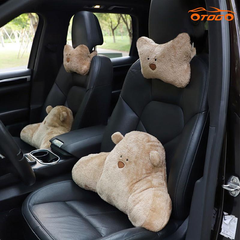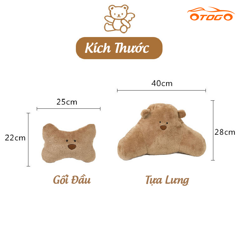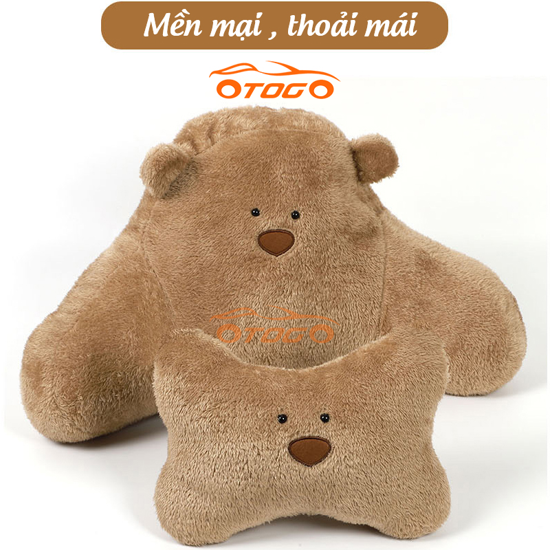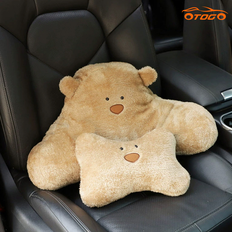 Bộ Gối Và Tựa Lưng Gấu Nâu Dễ Thương Cho Ô Tô