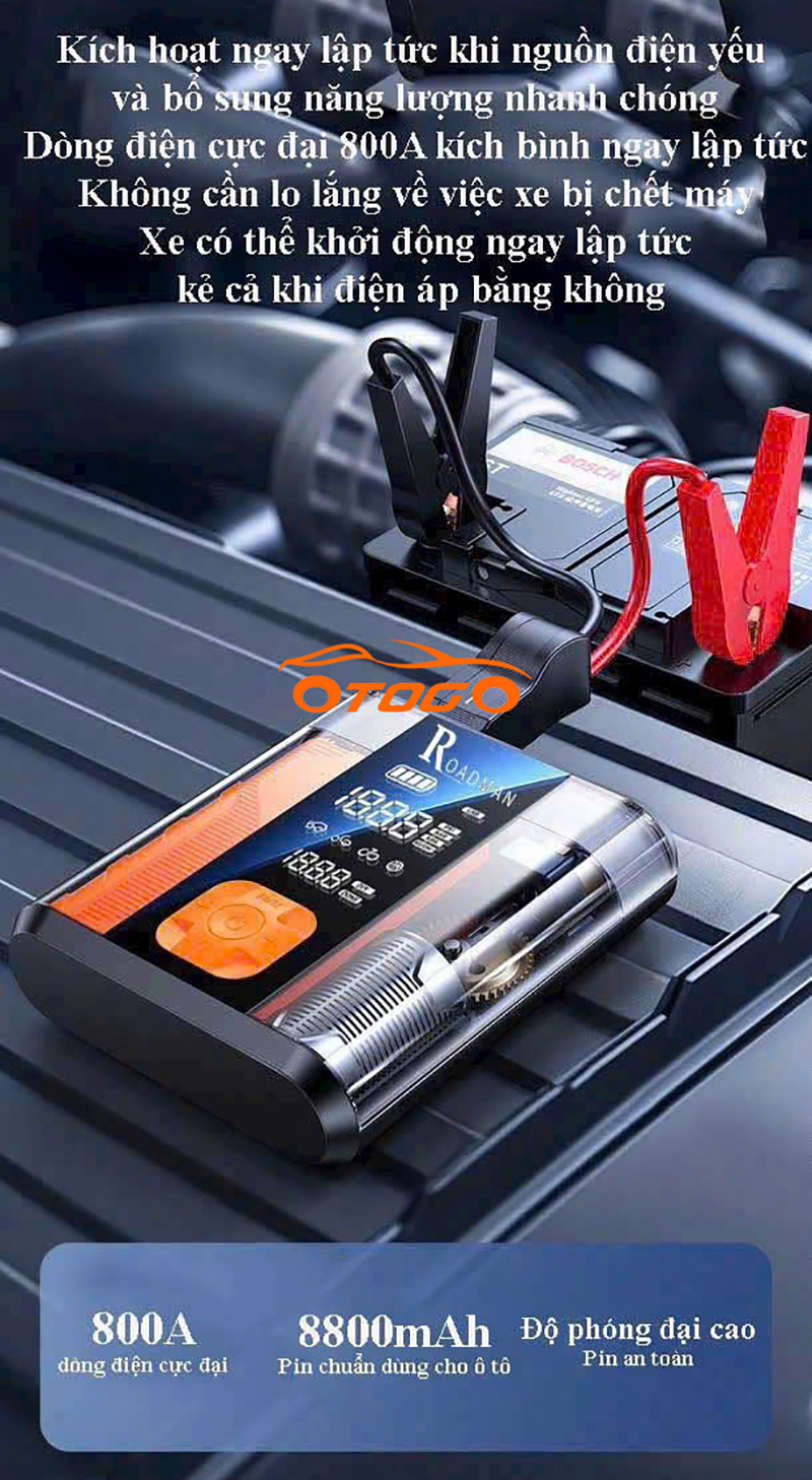 Dòng điện siêu mạnh 800A: Kích nổ nhanh chóng, hoạt động mạnh mẽ, kích được cho nhiều động cơ ô tô từ 4 đến 7 chỗ