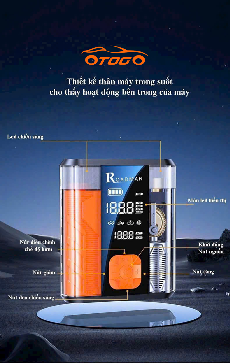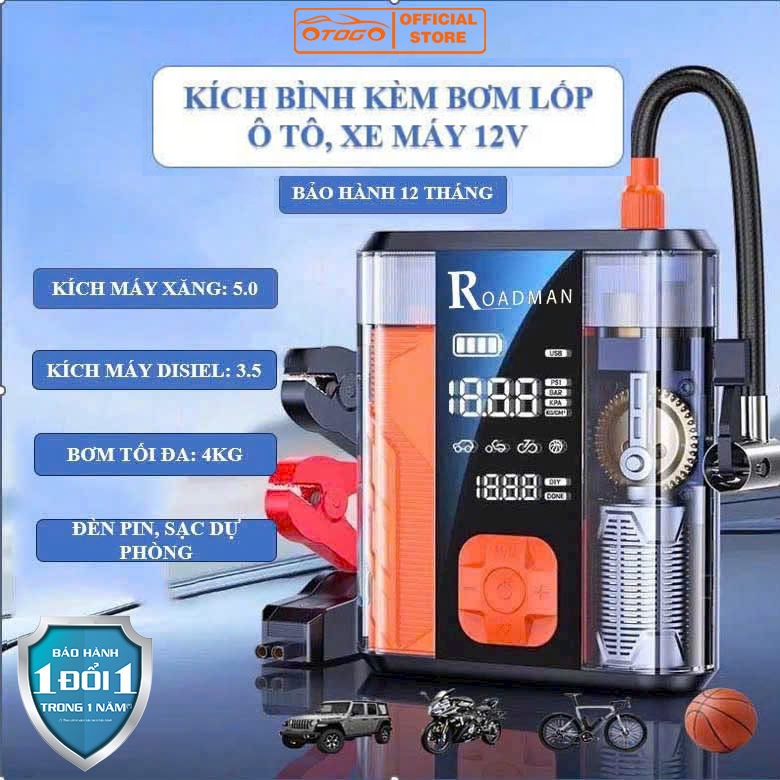 Bơm Lốp Kiêm Kích Bình RoadMan - Sản Phẩm 4 Trong 1 Thông Minh