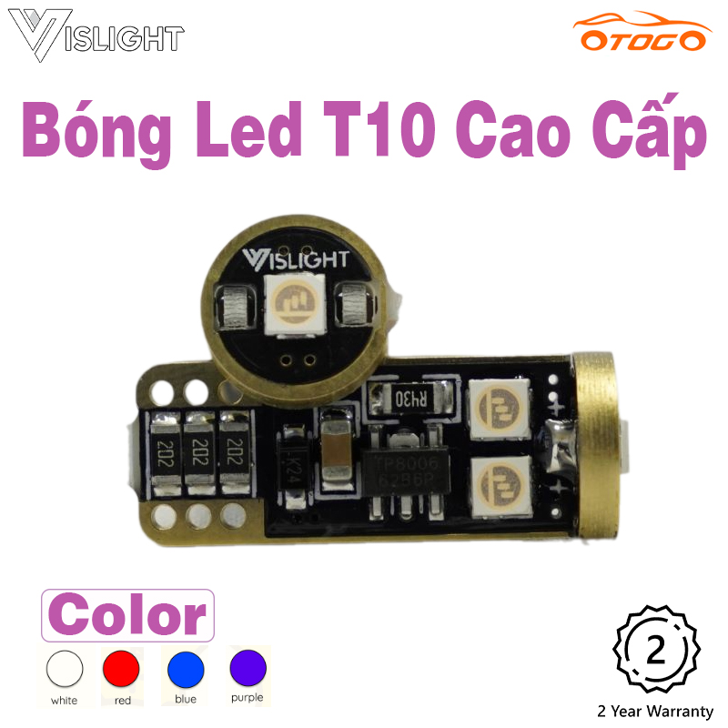 Đèn T10 Vislight sử dụng 3 chip LED gồm 2 chip LED 2 bên và 1 chip LED ở đỉnh, giúp ánh sáng tỏa đều xung quanh, và thích hợp với nhiều chóa đèn.