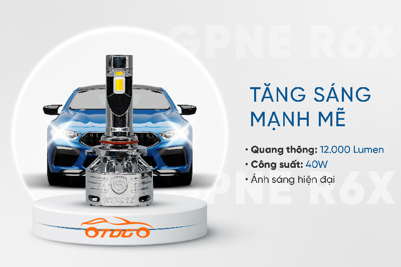 Cụ thể: Với công nghệ Chip độc quyền và số lượng nhân LED lớn, GPNE R6X giúp đèn xe chỉ tiêu thụ ở mức điện năng thấp 40W nhưng cho ra quang thông lên đến 12.000Lm, tăng sáng gấp hơn 500% so với đèn Halogen nguyên bản. Ánh sáng tỏa ra từ GPNE R6X vô cùng mạnh mẽ và rõ ràng, điều này làm cải thiện khả năng quan sát của người lái khi di chuyển vào ban đêm hay các điều kiện thiếu sáng khác.