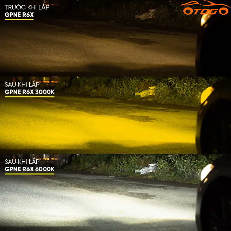 Cụ thể: Với công nghệ Chip độc quyền và số lượng nhân LED lớn, GPNE R6X giúp đèn xe chỉ tiêu thụ ở mức điện năng thấp 40W nhưng cho ra quang thông lên đến 12.000Lm, tăng sáng gấp hơn 500% so với đèn Halogen nguyên bản. Ánh sáng tỏa ra từ GPNE R6X vô cùng mạnh mẽ và rõ ràng, điều này làm cải thiện khả năng quan sát của người lái khi di chuyển vào ban đêm hay các điều kiện thiếu sáng khác.