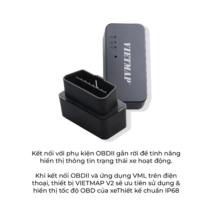 Khi kết nối OBDII và ứng dụng VML trên điện thoại, thiết bị VIETMAP V2 sẽ ưu tiên sử dụng & hiển thị tốc độ OBD của xe.