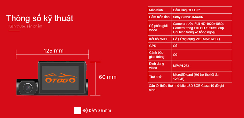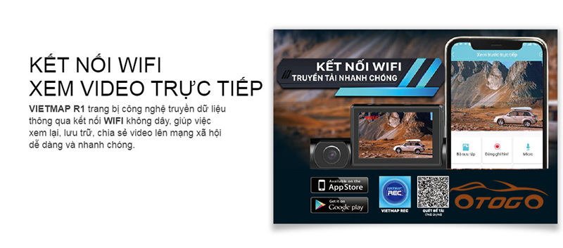 Đặc biệt camera trong xe trang bị hồng ngoại hỗ trợ chế độ ghi hình đêm, giúp tối ưu chất lượng hình ảnh trong điều kiện tối hoặc thiếu sáng đồng thời trang bị công nghệ truyền dữ liệu không dây giúp việc xem lại, trích xuất video, cập nhật dữ liệu trực tuyến nhanh chóng trên các thiết bị hệ điều hành Android, IOS thông qua ứng dụng VIETMAP REC.