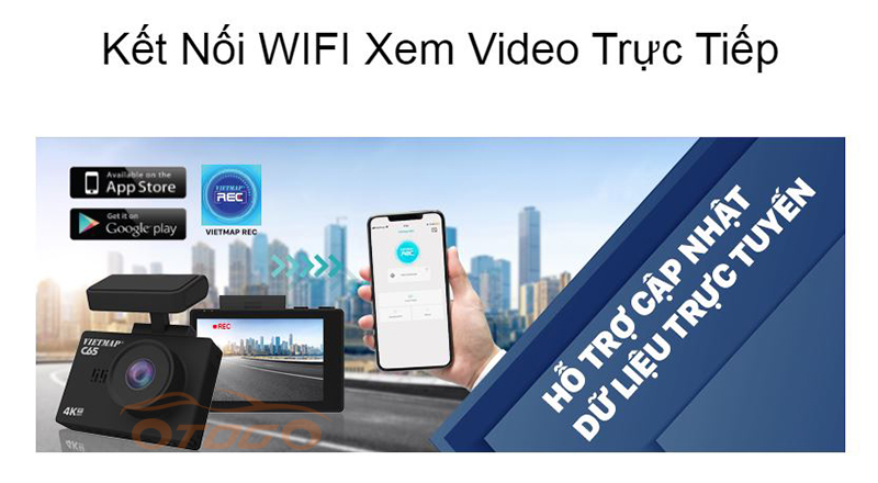 VIETMAP C65 trang bị công nghệ truyền dữ liệu thông qua kết nối WIFI không dây, giúp việc xem lại, lưu trữ chia sẻ video lên mạng xã hội dễ dàng trên các thiết bị HĐH Android, IOS.