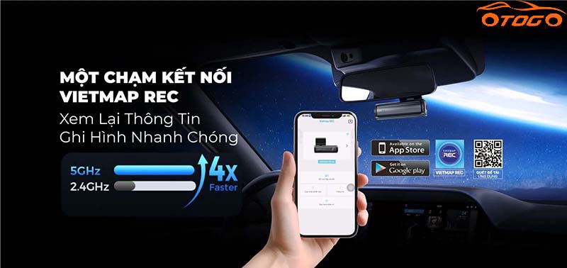 Đồng thời kết nối với VIETMAP REC chỉ với 1 chạm, tự động tìm kiếm kết nối với Camera TS-5K, tiện lợi, dễ sử dụng.
