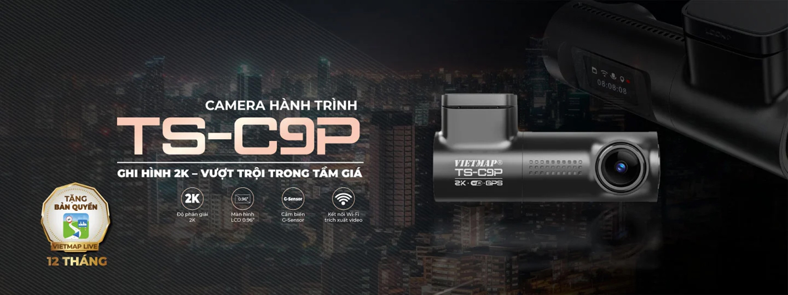 Trải nghiệm chất lượng hình ảnh rõ nét mọi lúc với VIETMAP TS-C9P, camera hành trình đỉnh cao với chất lượng ghi hình 2K vượt trội. Tặng ngay bản quyền VIETMAP LIVE PRO - 12 tháng khi mua sản phẩm.