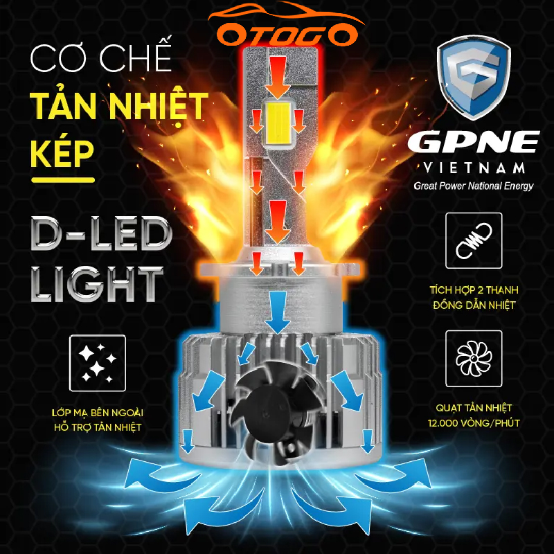- Hiệu suất tản nhiệt mạnh mẽ, quạt im lặng tốc độ cao, đảm bảo làm mát đèn nhanh