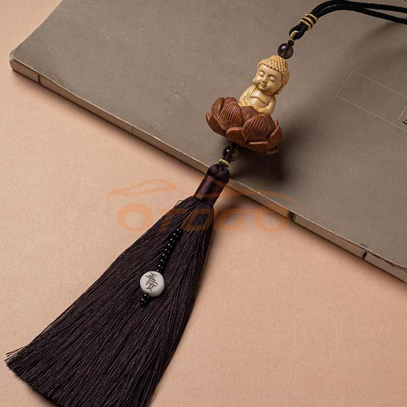 Dây khánh treo xe hơi hình Phật tọa liên hoa dược điêu khắc thủ công