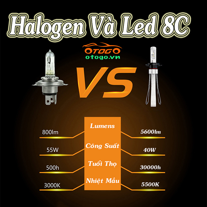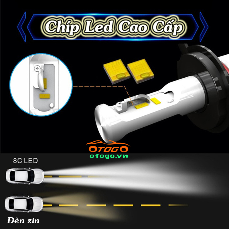 – Bóng đèn pha led ô tô 8C còn tích hợp hệ thống làm mát, đồng tản nhiệt.