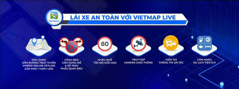 Vietmap Live là bản đồ chỉ dẫn đường đi trực tuyến chuyên dụng cho ô tô được sử dụng cùng các thiết bị hiển thị thông tin kính lái HUD. VIETMAP Live là người trợ lý đáng tin cậy với nhiều tính năng và tiện ích hỗ trợ lái xe như: tìm kiếm trạm xăng gần đây, gợi ý nhà hàng có bãi giữ xe, báo cấm dừng cấm đỗ…