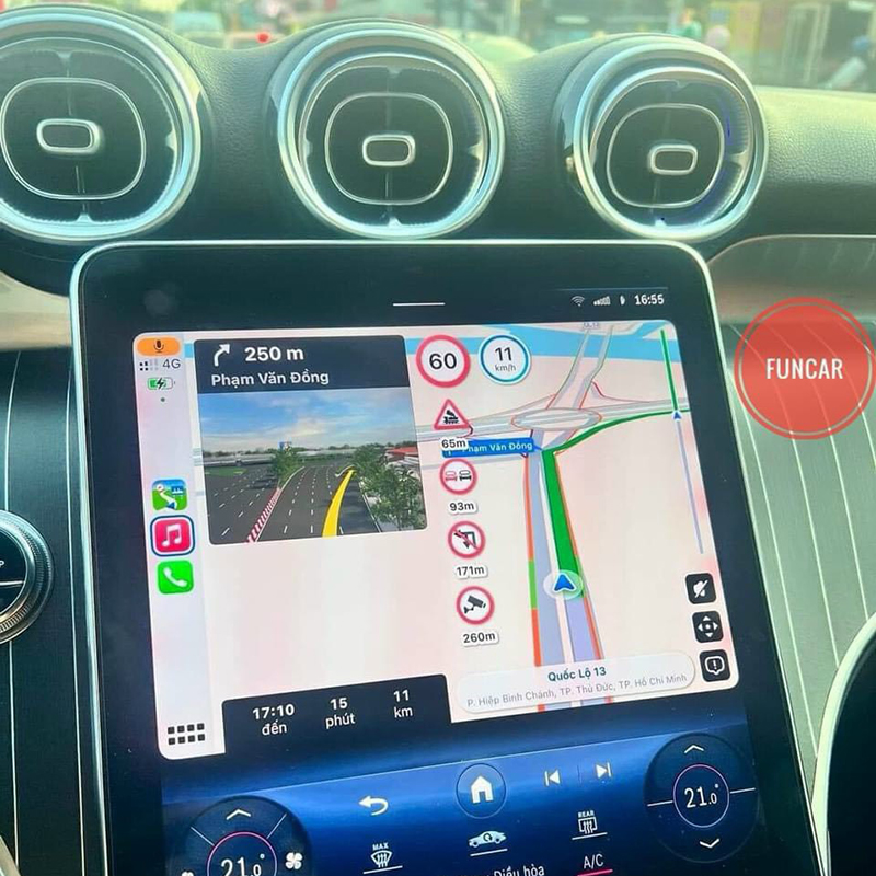 Ứng dụng VIETMAP Live hỗ trợ tính năng kết nối với màn hình nguyên bản của xe thông qua phương thức Apple Car play và Android Auto.