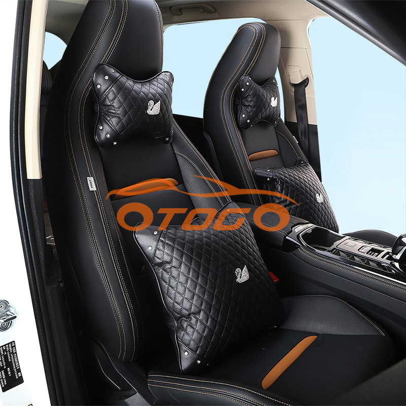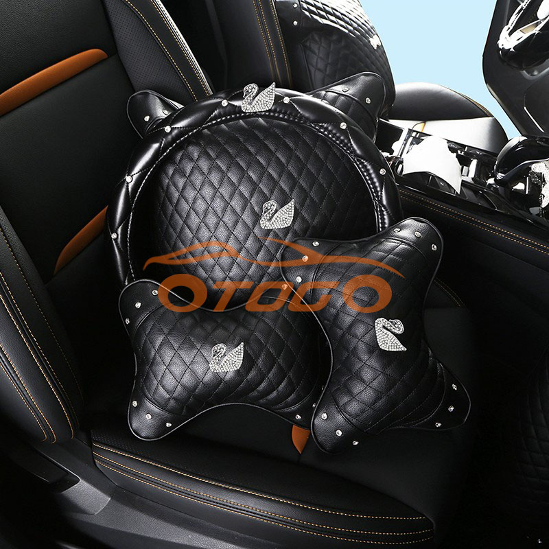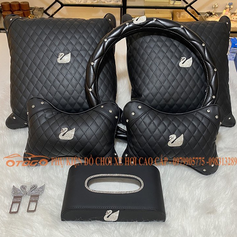 Combo gối tựa và Bọc vô lăng thiên nga Với tông màu thật tinh tế với sự pha trộn một chút màu đen và trắng mát mẻ.