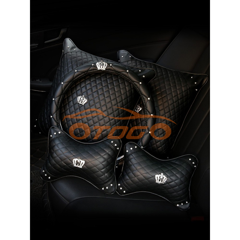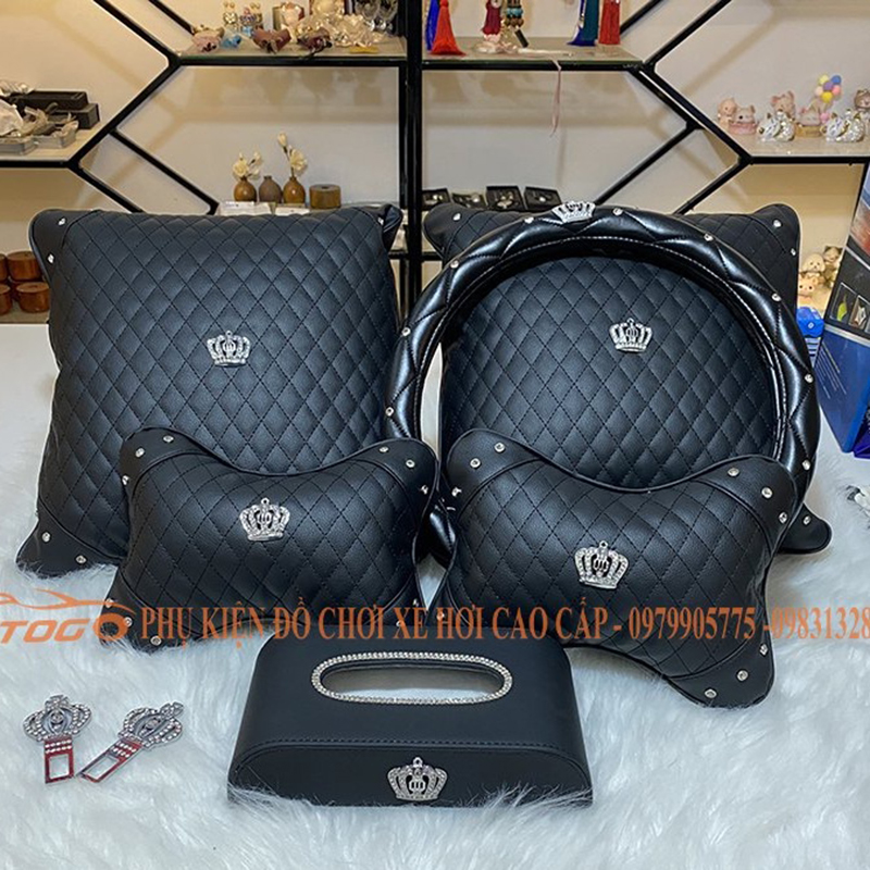 Combo gối tựa và Bọc vô lăng vương miện Với tông màu thật tinh tế với sự pha trộn một chút màu đen và trắng mát mẻ.