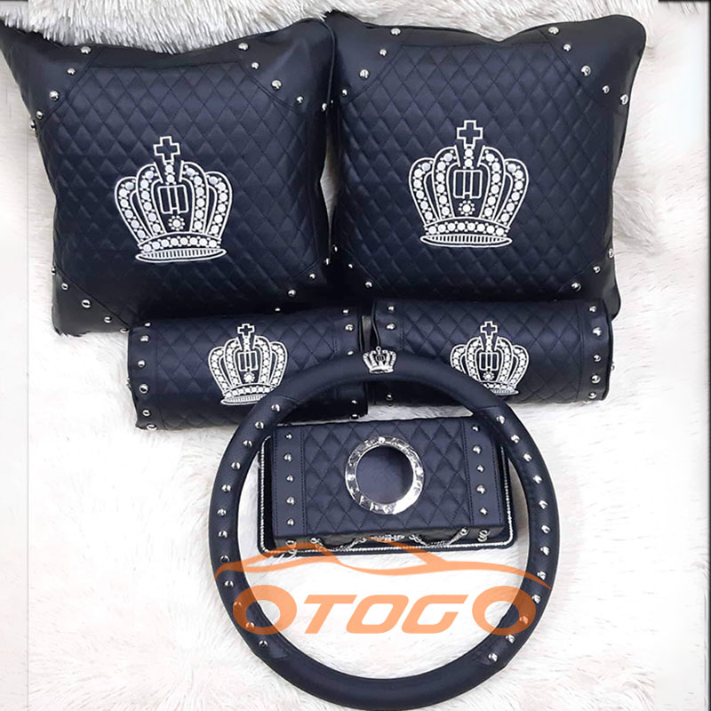 Combo gối tựa và Bọc vô lăng vương miện Với tông màu thật tinh tế với sự pha trộn một chút màu đen và trắng mát mẻ.