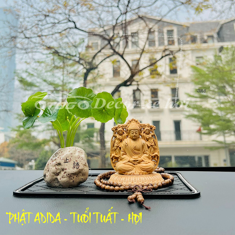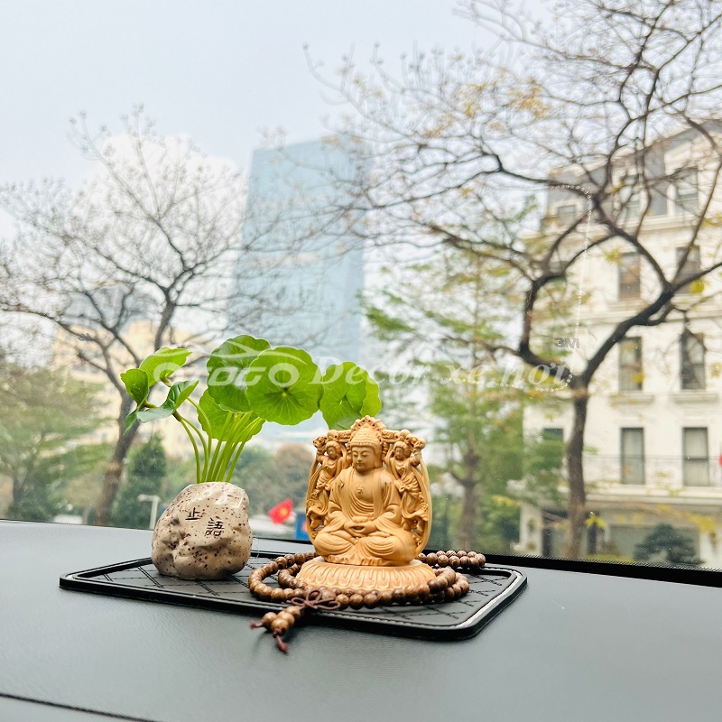 SET Tượng Phật Bản Mệnh Trang Trí Ô Tô Theo Tuổi Gỗ Hoàng Dương Cao Cấp