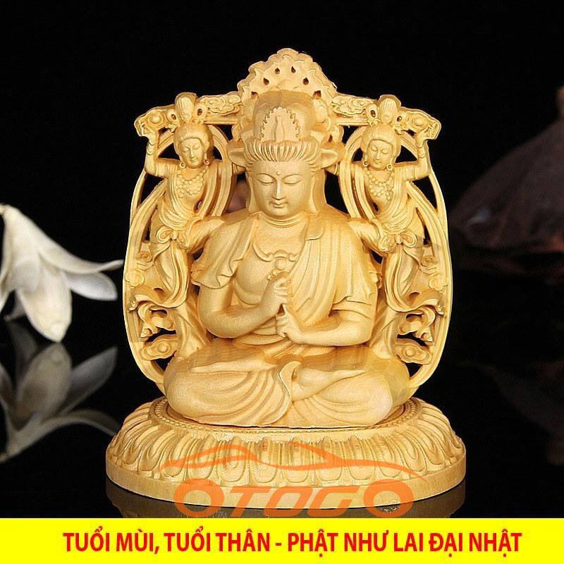 Tượng Phật Bản Mệnh Trang Trí Ô Tô Theo Tuổi được chế tác từ GỖ HOÀNG DƯƠNG Nguyên Khối